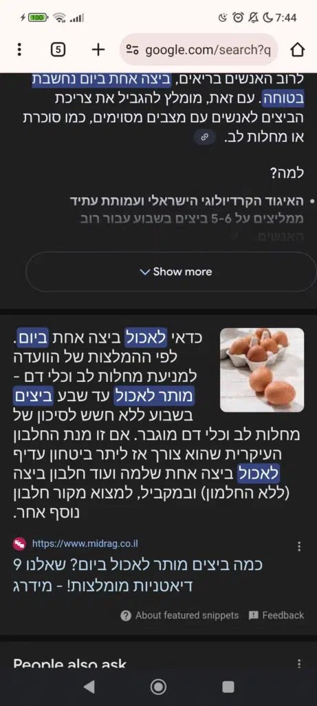 אני חושבת שהיא מופיעה בכל הלינקים למרות שהיא רק תוצאה 9 בגוגל – כי היא היחידה בעמוד הזה שיש לה מומחיות אמיתית בתחום הזה. יתר התוצאות בעמוד הן אתרים סופר גדולים וחזקים (מידרג, ישראל היום, כללית). אבל האתר שלה סמכותי ומיועד ספציפית לתזונה (וכושר). כלומר הרלוונטיות שלה לביטוי גבוהה. היא אתר פחות חזק – אבל יותר מומחה. ובשבילכם שקוראים את זה – זה משמעותי.