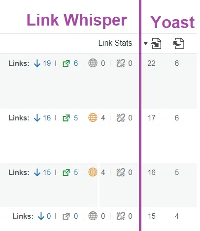 באתרי וורדפרס, אפשר לראות כמה קישורים פנימיים יש לכל עמוד באמצעות כל מני תוספים. אלו שניים מהם: